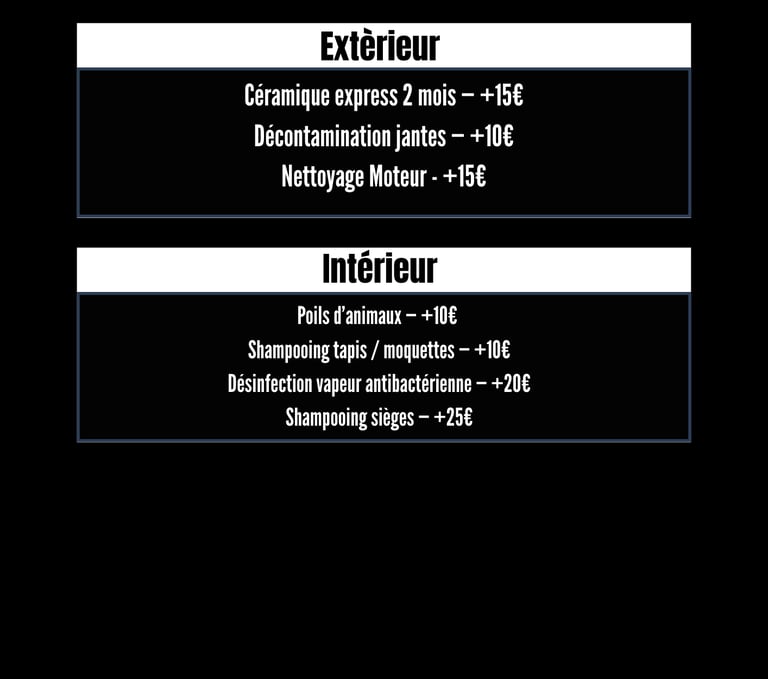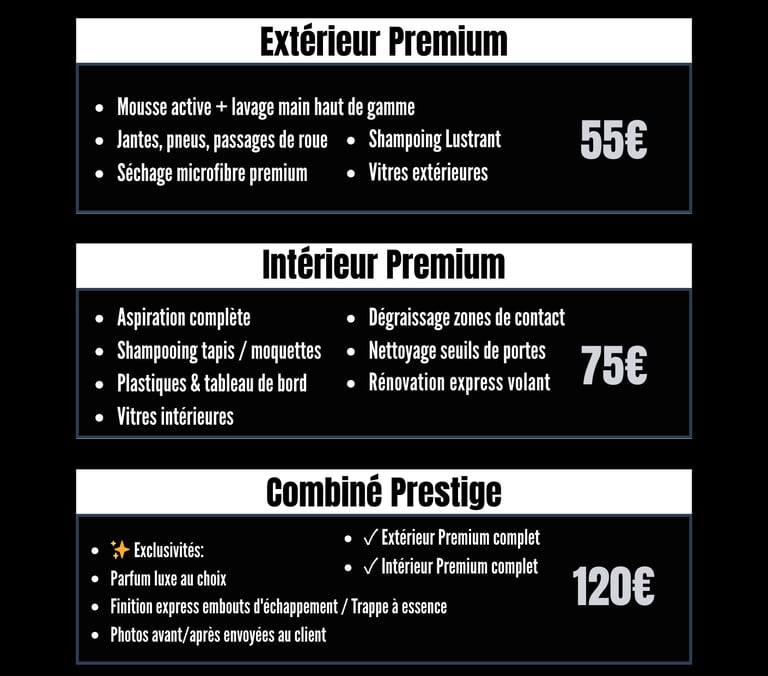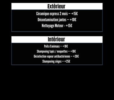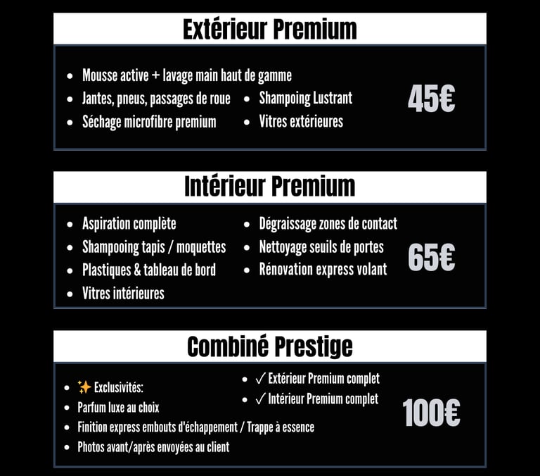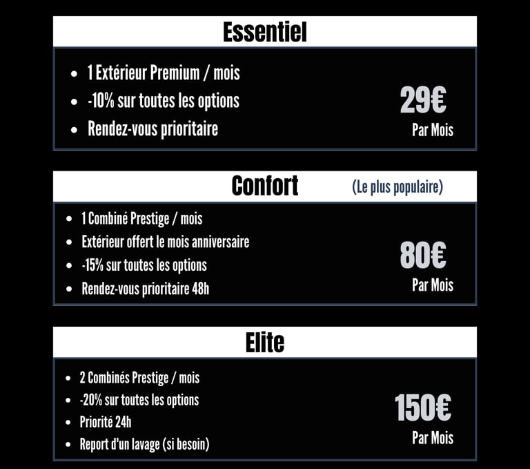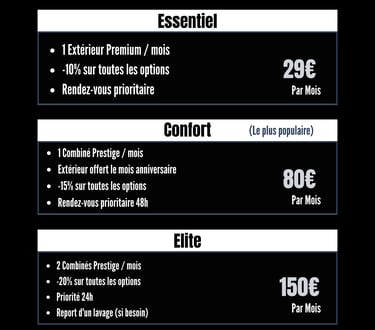 Découvrez nos formules adaptées à chaque type de véhicule, pour un nettoyage sur-mesure.
